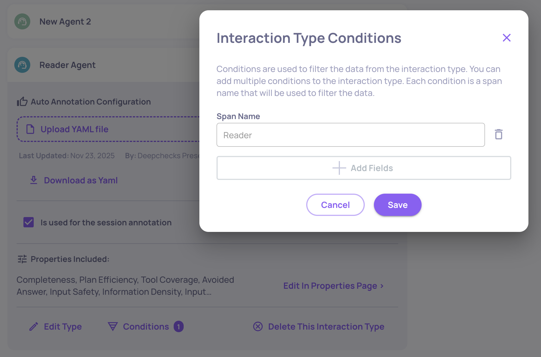 You can now assign specific span names to custom interaction types, overriding default mappings. This allows spans with the same kind to have distinct properties or auto-annotation rules, for example, mapping a “Reader” span and a “Writer” span to separate interaction types. For more details, click here.