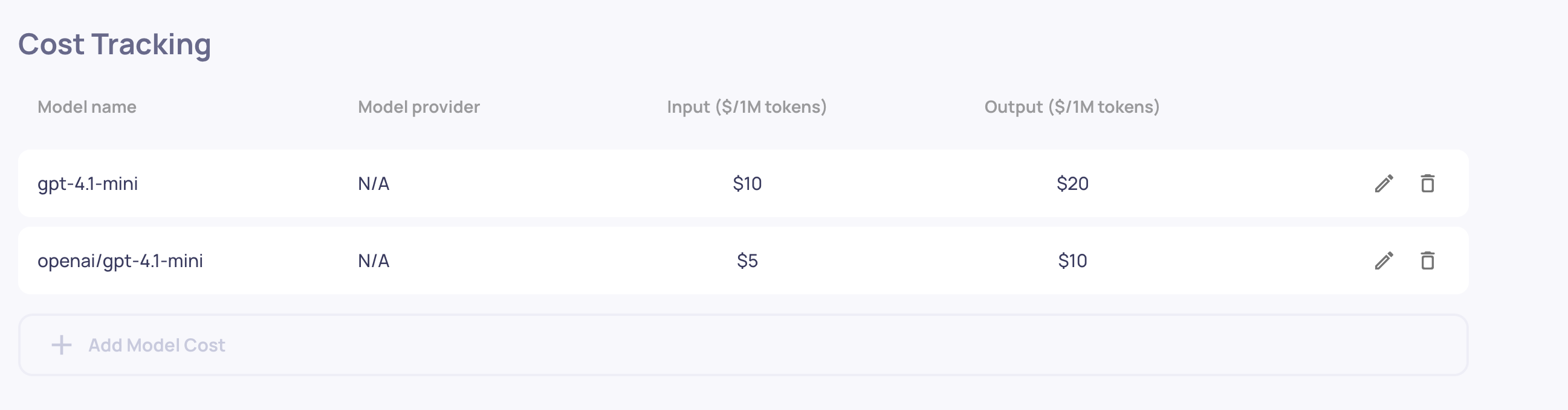 - Automatic Cost Calculation - Configure model pricing once at the organization level, and costs are computed automatically for every interaction