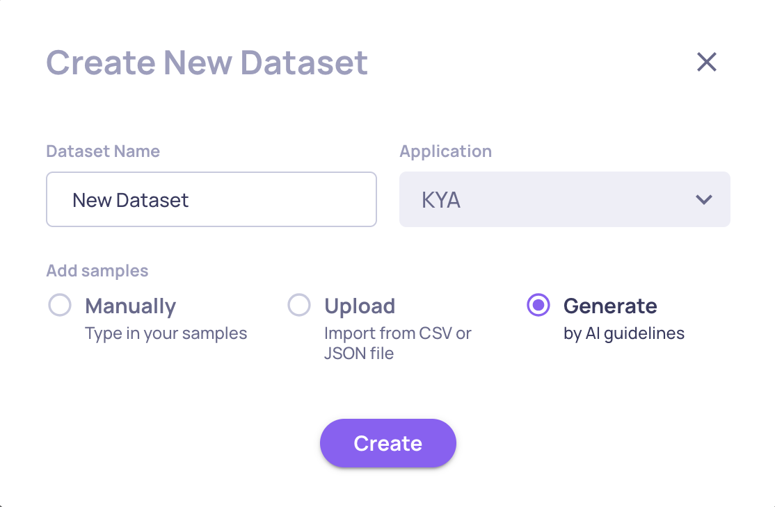 Combine with Manual Samples: AI generation provides breadth; manual curation adds critical edge cases you know matter. Use generation to build the foundation, then add targeted samples for known gaps.