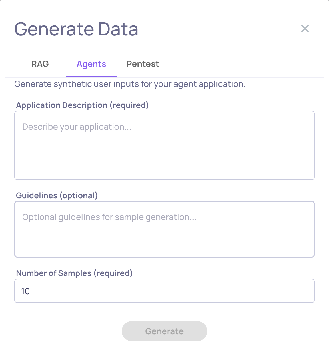 Start Small: Generate 10-20 samples first, review quality, refine your description/guidelines, then generate more. This iterative approach yields better results than generating 100 samples in one shot.