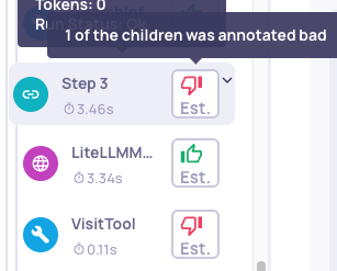 Deepchecks supports agentic use cases and automatically annotates parent interactions based on their children’s annotations. This is designed for hierarchical interaction types such as Agent, Chain, and Root, where a parent’s quality depends on the quality of its child interactions.