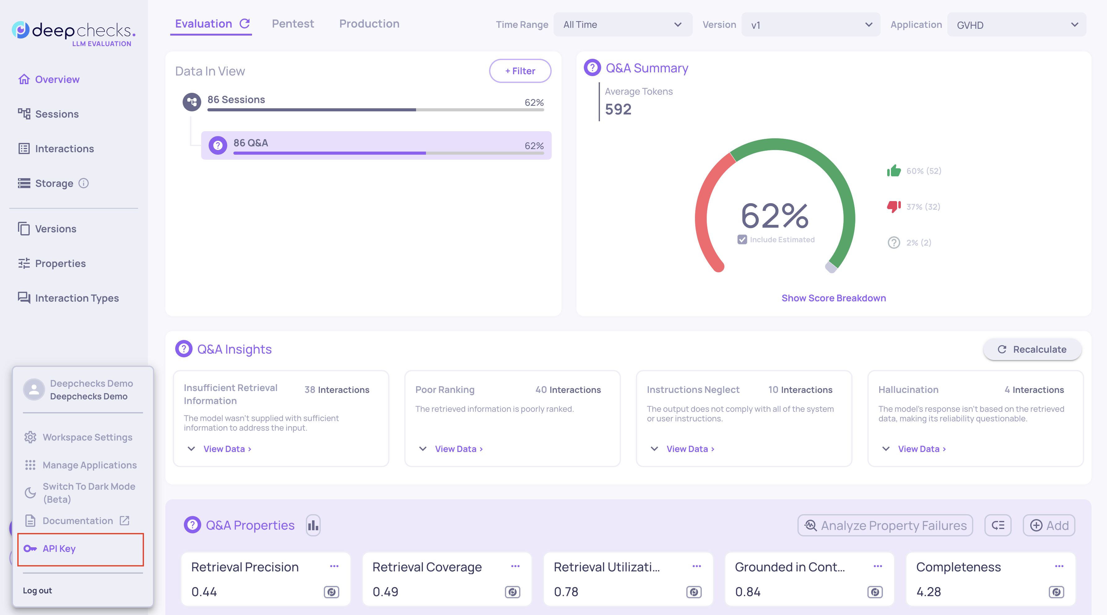Once you have your API key, it can be used across all Deepchecks workflows: