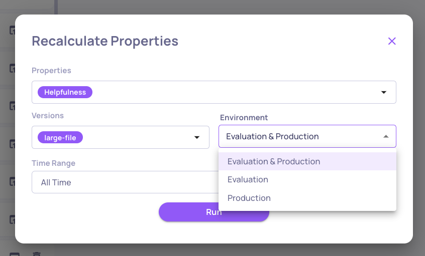 Once satisfied, save the property. Saving affects future calculations - all new interactions will be scored automatically. You also have the option to recalculate on past interactions, so you can apply the property retroactively to existing data.