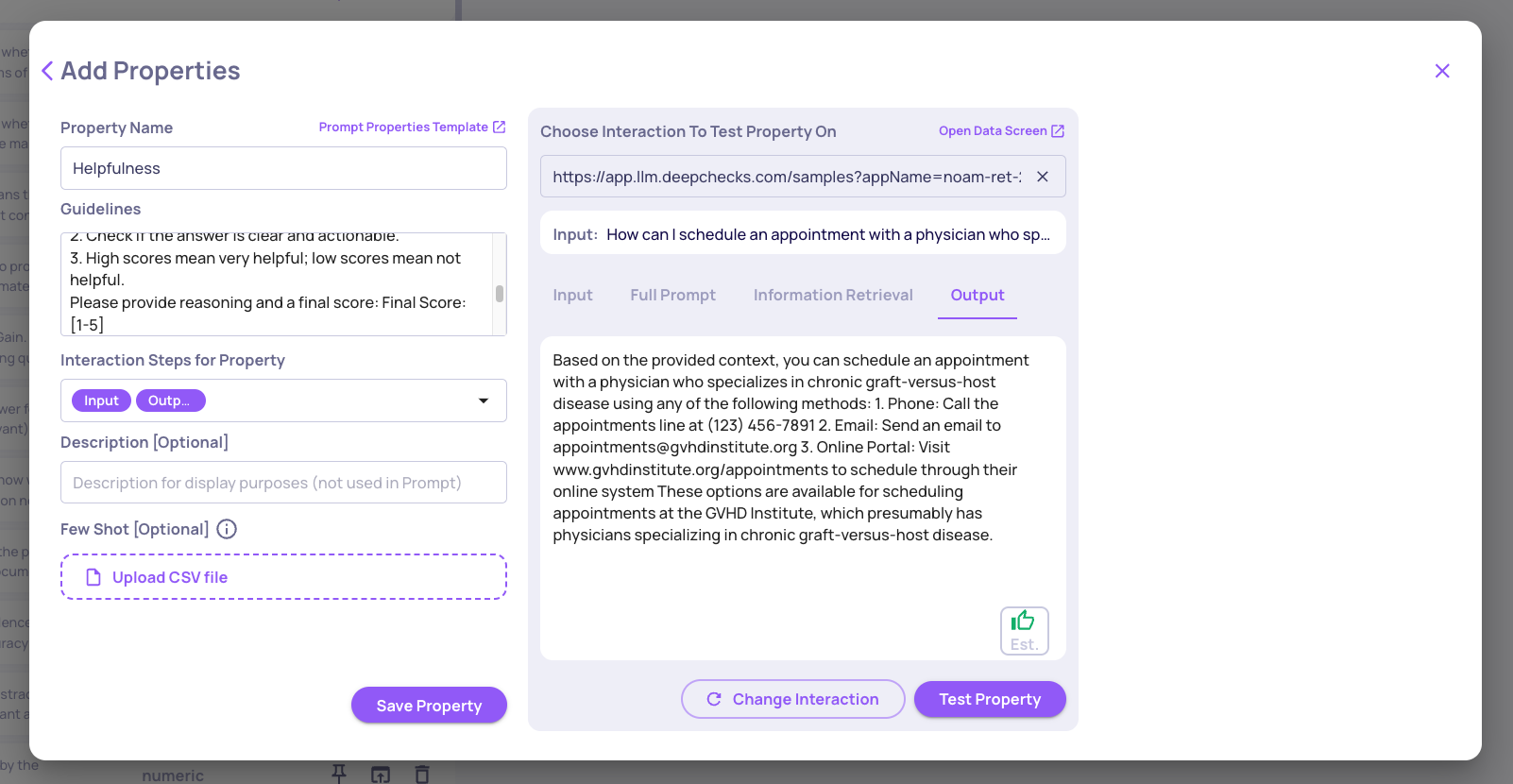 You're evaluating a customer support chatbot. You want a numerical property that scores how helpful each response is - from 1 (not helpful) to 5 (very helpful) - with consistent, actionable reasoning.