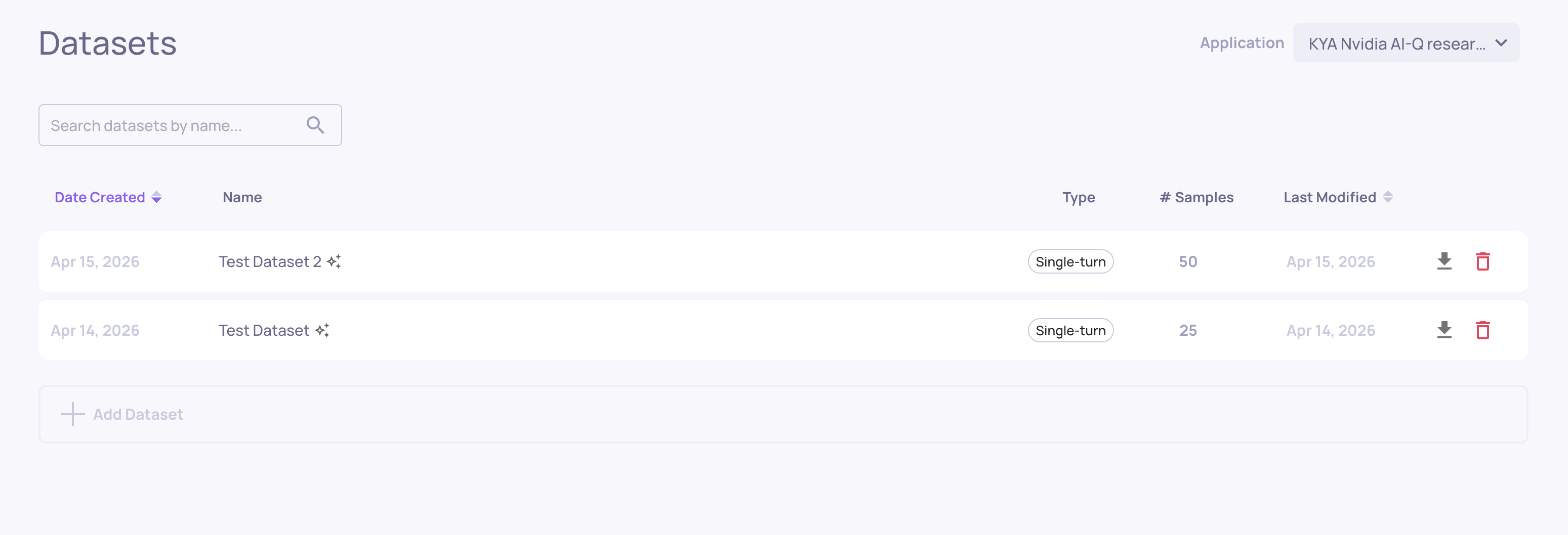 Where: Left sidebar > Datasets