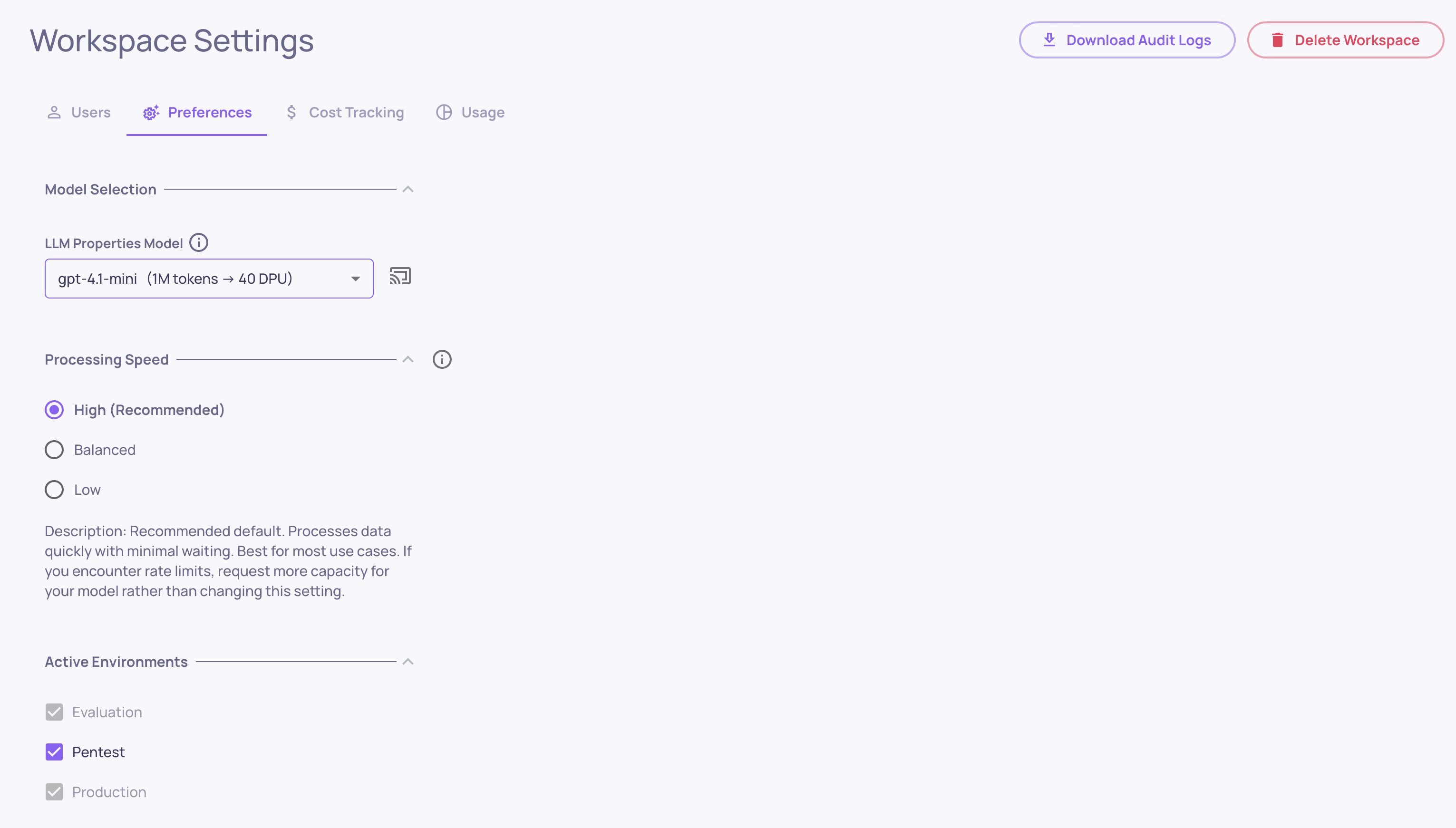 Workspace Settings