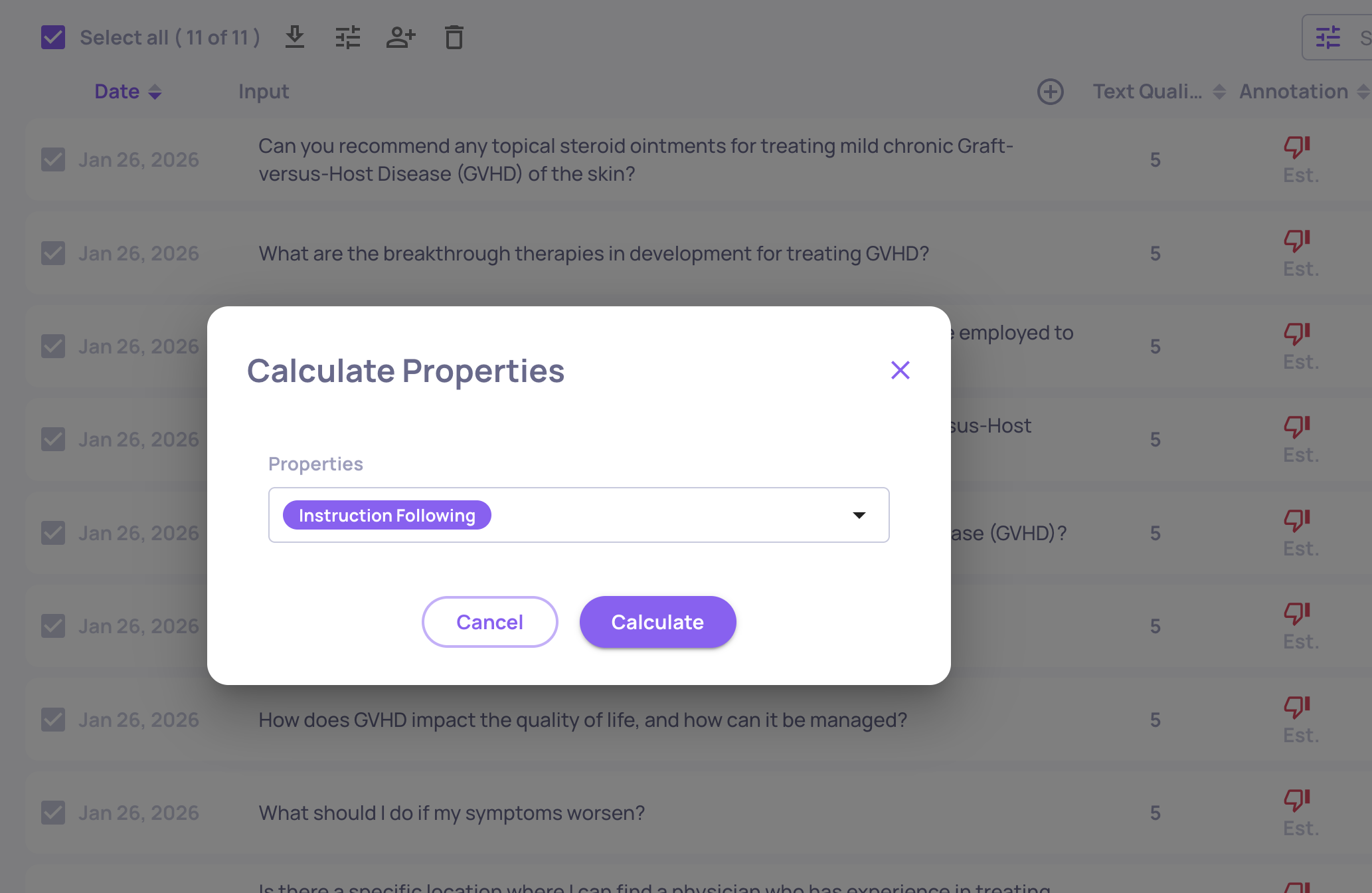 Not every property needs to run on every interaction. Deepchecks lets you pause properties so they don't calculate automatically on new data - and then run them on-demand against specific subsets of your data.