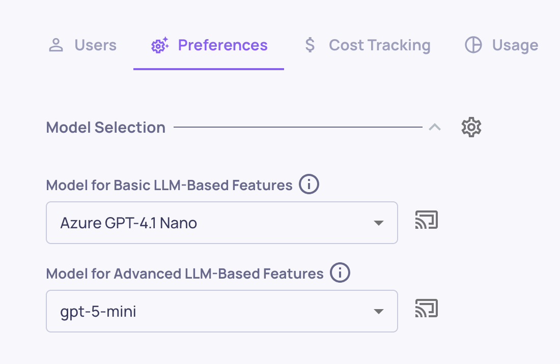 Choosing a cost-effective basic model has the single biggest impact on your LLM costs. We recommend Claude Haiku 4.5 for the basic tier.