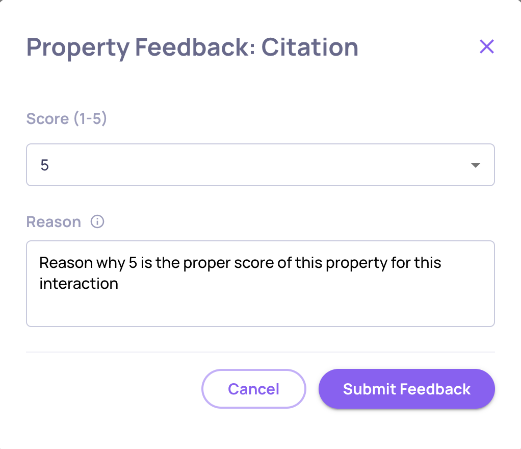 Over time, adding examples across diverse interactions transforms a generic property into one tailored to your quality standards, domain terminology, and edge cases.